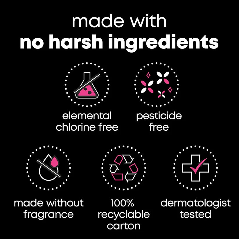 - No Harsh Ingredients: Dermatologist-tested and made without fragrances, lotions, pesticides, elemental chlorine and natural rubber latex