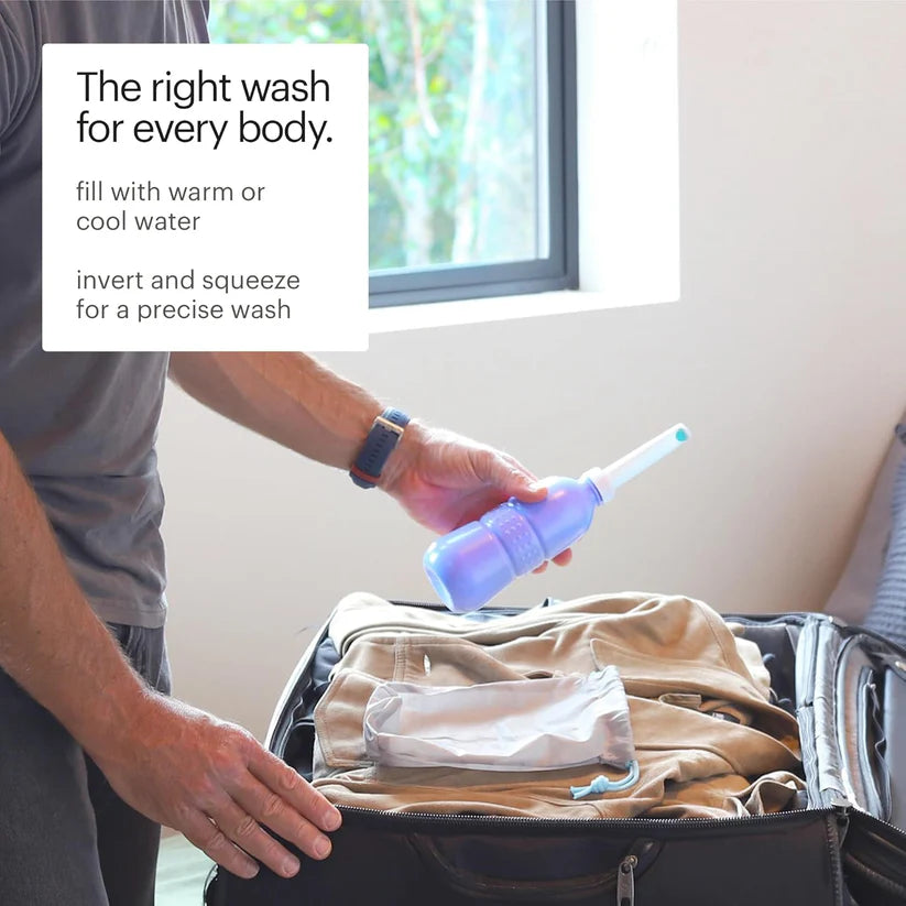 Fill with warm or cool water, invert, and squeeze. GoSpa can help cut down on toilet paper use by providing a gentle, precise wash with easy pressure control.